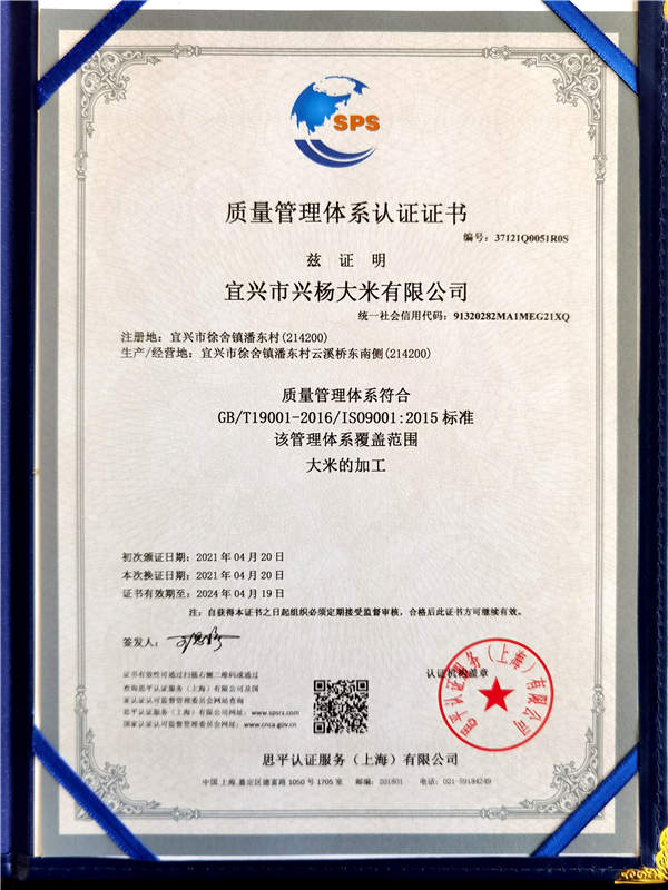 宜興市興楊大米有限公司坐落于江蘇宜興市徐舍鎮(zhèn),是一家集水稻種植、收購、加工、銷售與一體的江蘇無錫市農(nóng)業(yè)產(chǎn)業(yè)化龍頭企業(yè)。本公司多年被評為“無錫市放心糧油示范加工企業(yè)”,“江蘇省糧食經(jīng)營者守法誠信A級企業(yè)”等。2020年12月獲得“無錫好米”金獎(jiǎng)。注冊資本1200萬元,已具備年產(chǎn)5萬噸大米的加工能力。